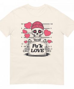- Bold and Hilarious Design: Featuring a skeleton with the phrase “Fuck Love,” this shirt offers a playful, irreverent take on traditional Valentine’s Day attire.