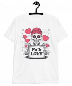 “Fuck Love” Funny Valentine’s Day Shirt – Hilarious Gift for Him – Skeleton Design Birthday Gift for Men