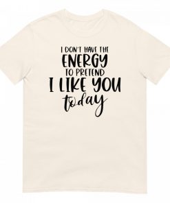 The witty quote, “I Don’t Have the Energy to Pretend I Like You Today,” is a perfect way to capture those moments when we all feel like being completely honest about our moods. Whether it’s a busy workday, a challenging social situation, or just a moment of needing some personal space, this tee speaks the truth in a humorous and relatable way. It’s perfect for those who enjoy expressing their feelings with a dose of humor, and it’s sure to make anyone who sees it laugh out loud.