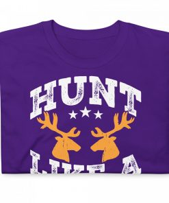 Celebrate the adventurous spirit of the woman hunter in your life with our “Hunt Like a Girl” tee. This bold and empowering shirt is the perfect gift for any woman who loves the thrill of the hunt, whether she’s a seasoned pro or a newbie in the field. Designed for women hunters, this tee combines humor and style, making it an ideal birthday gift, Valentine’s Day gift, or simply a fun gift for her. Let her show off her passion for hunting with this statement-making shirt!