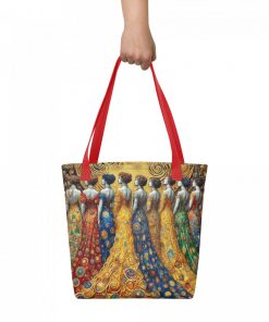 Carry your belongings in artistic flair with this oil painting tote bag showcasing graceful sculptural figures. This spacious and durable 15×15 inch polyester bag holds up to 44lbs, perfect for books, groceries, or art supplies. Features comfortable 26-inch cotton bull denim handles. A unique and trendy accessory for art lovers and a thoughtful gift.