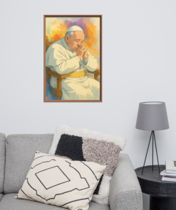 Your search: Personalized Pope Francis gift, unique religious wall art, durable tribute poster, museum-quality home decor, meaningful anniversary gift, eco-friendly keepsake, inspirational Catholic gift, custom spiritual decor.