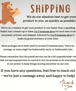Delivery Times: We aim to ship orders within the timeframe specified on the Site, but we are not responsible for any delays caused by shipping carriers.