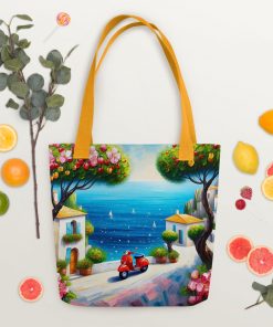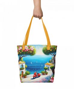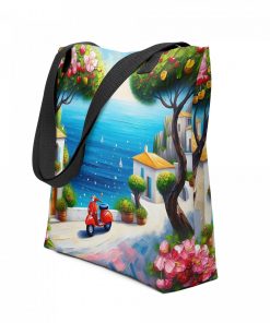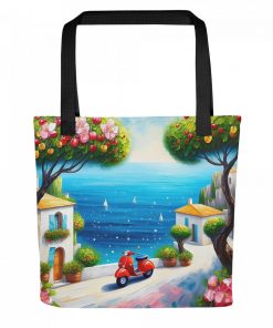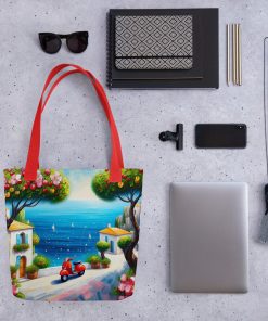 A spacious and trendy tote bag to help you carry around everything that matters. Friends and family will adore this stylish tote featuring a vibrant blue sky and red scooter art design. The unique paint aesthetic makes it a wonderful gift for art enthusiasts and scooter lovers. An amazing present idea for birthdays or holidays for Mom, Grandma, or a special friend. They’ll love its artistic flair!