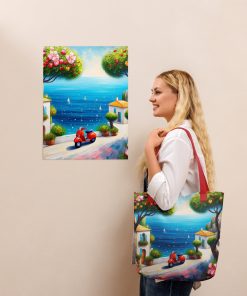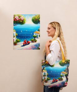 Be the first to review “Tote bag Blue Sky and Red Scooter Art Paint” Cancel reply
