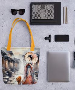 A spacious and trendy tote bag to help you carry around everything that matters. Show off your unique style with this trendy Japan art tote bag. Durable polyester and spacious design (15″ x 15″) make it perfect for everyday use. A great gift for lovers of Japanese culture and art. Ideal for carrying books, groceries, and more.